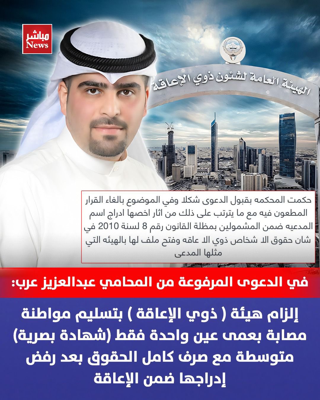 يُذكر أن هذا الحكم قد يفتح الباب أمام حالات مشابهة كانت تعاني من ضبابية التصنيف الإداري، مما يعيد تعريف “الإعاقة البصرية” في سجلات الهيئة بما يتوافق مع الأحكام القضائية الحديثة.