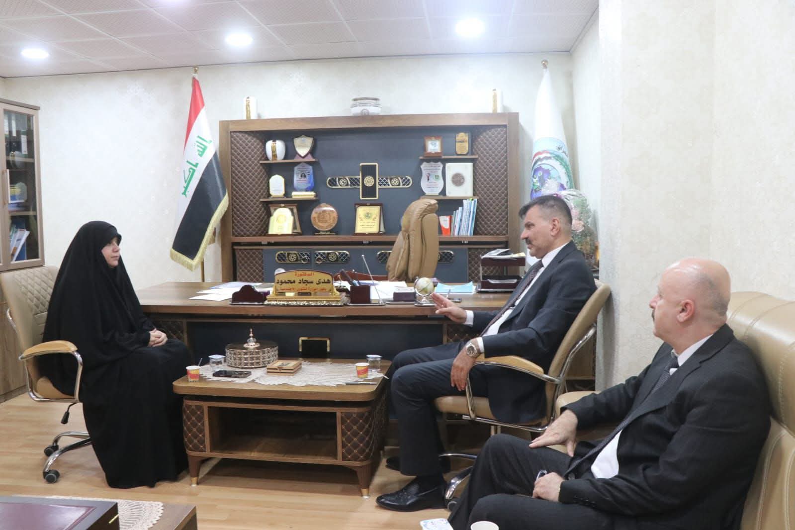 بحثت وكيل وزارة العمل للشؤون الاجتماعية الدكتورة هدى سجاد خلال اجتماع مع المدير العام لدائرة الاحتياجات الخاصة السيد مظفر الحلفي، مراحل إنجاز إصدار الوثائق الرسمية، تنفيذاً لمفردات الأمر الديواني الخاص بتشكيل لجنة مشتركة معنية بهذا الملف.